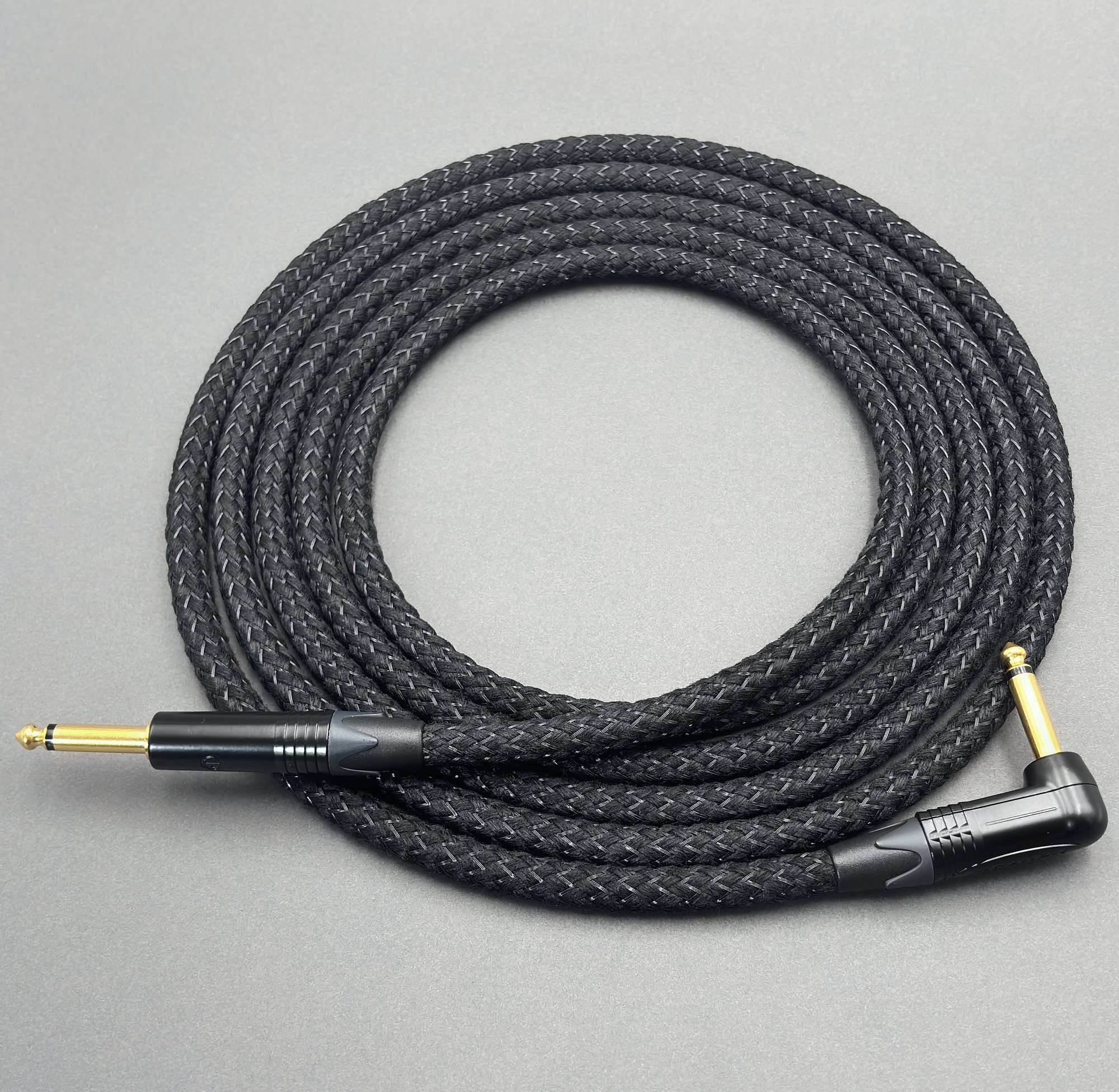Low capacitance (1m/78 pF) double screened coaxial (Sommer SC-Spirit) cable (inner conductor 0.50mm²) combined with Neutrik NP2 series 1/4” TS Jack gold plugs (available straight or right-angled)